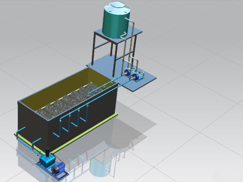 4、接觸氧化池內采用曝氣器進行鼓風曝氣,使纖維束不斷飄動,曝氣均勻,微生物生長成熟,具有活性污泥法的特征;